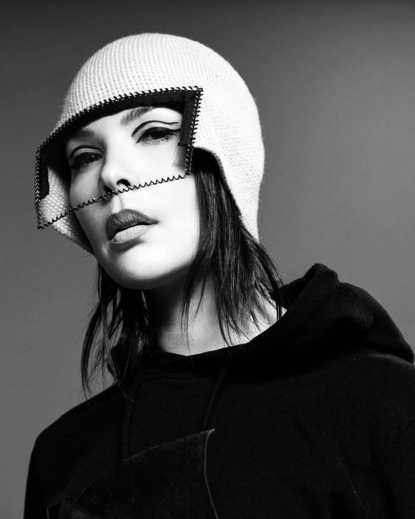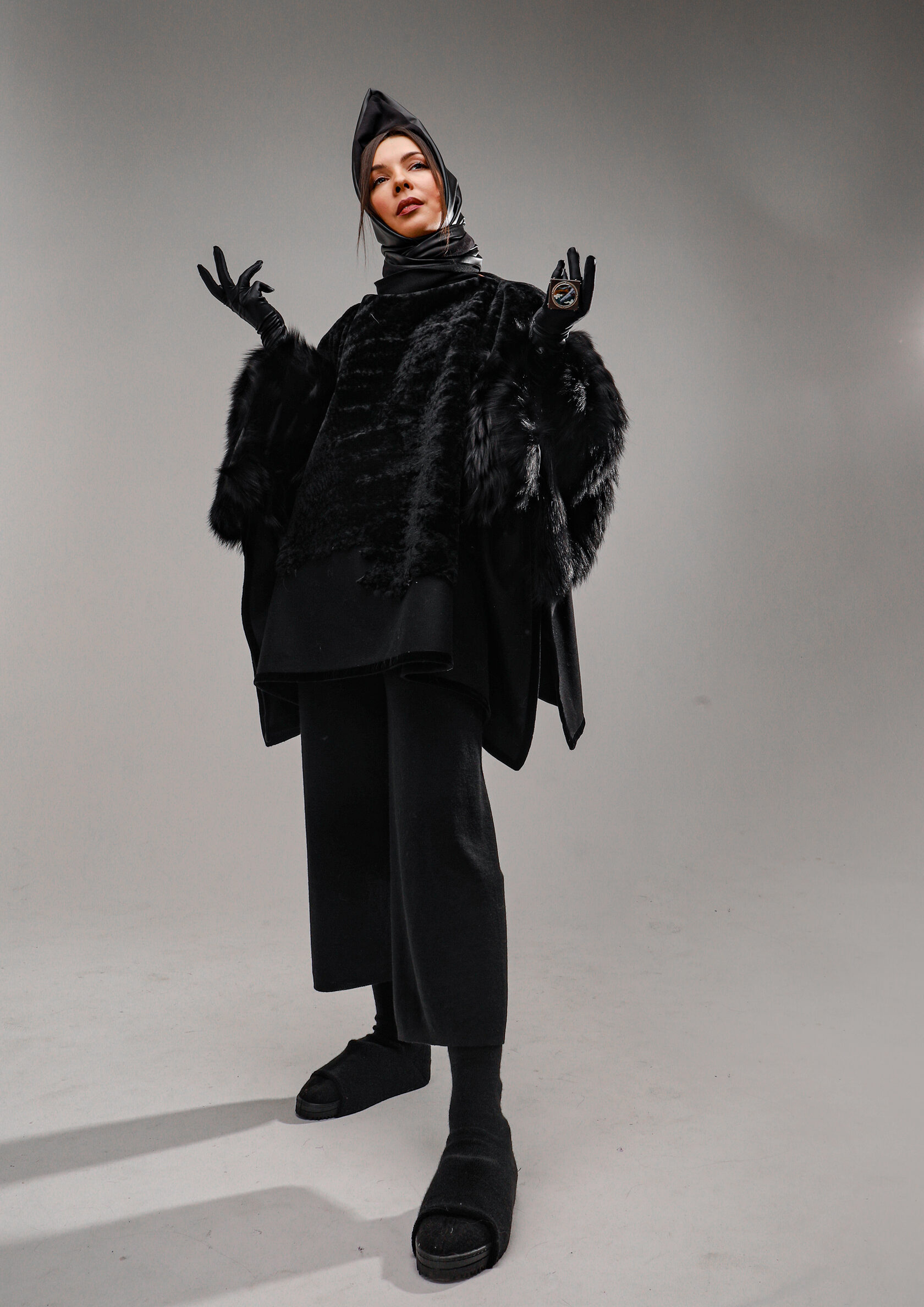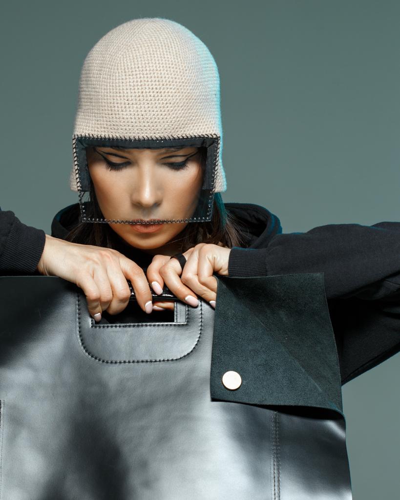 Авторский шлем ручной работы из шерсти с экраном.